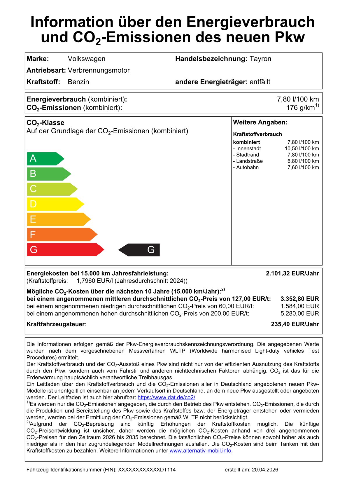 (Auf Wunsch veränderbar) - Jährliche Fahrleistung: 10.000 km